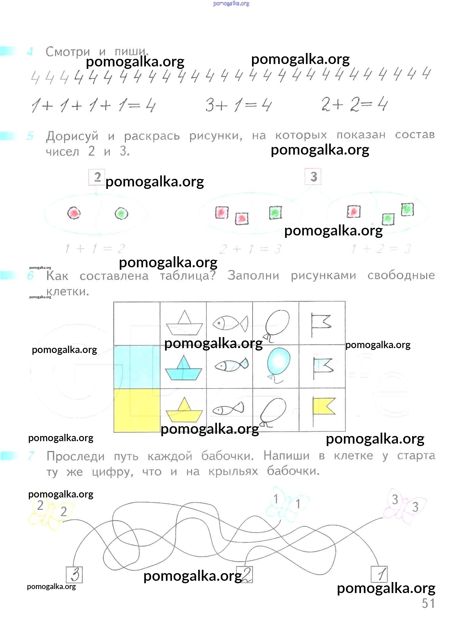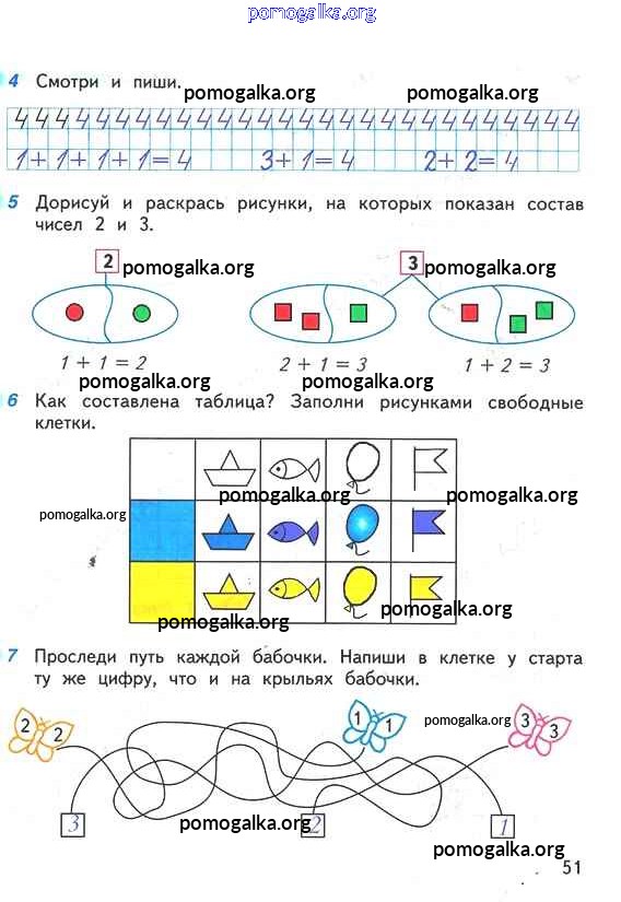 Готовые ответы - Математика 1 класс рабочая тетрадь Дорофеев Г.В. - часть 1. страница 51