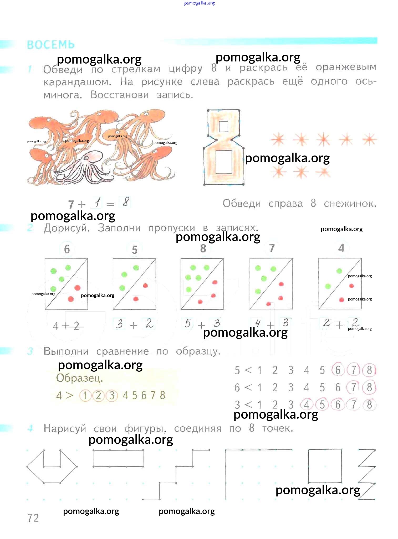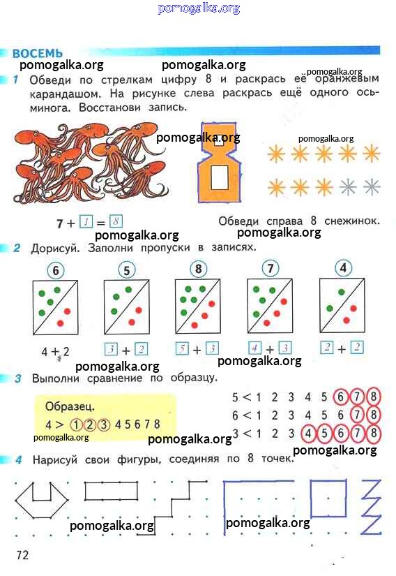 Готовые ответы - Математика 1 класс рабочая тетрадь Дорофеев Г.В. - часть 1. страница 72