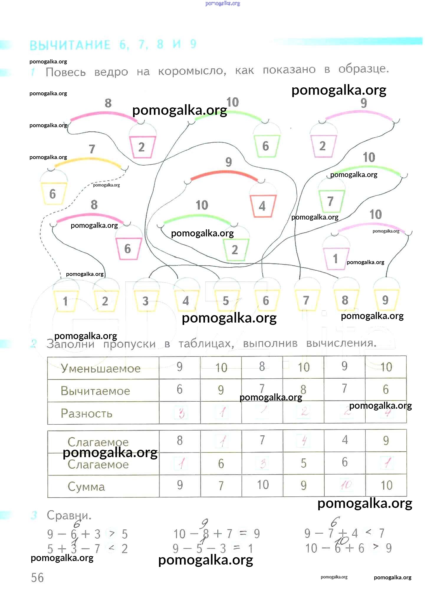 Готовые ответы - Математика 1 класс рабочая тетрадь Дорофеев Г.В. - часть 2. страница 56