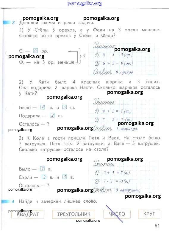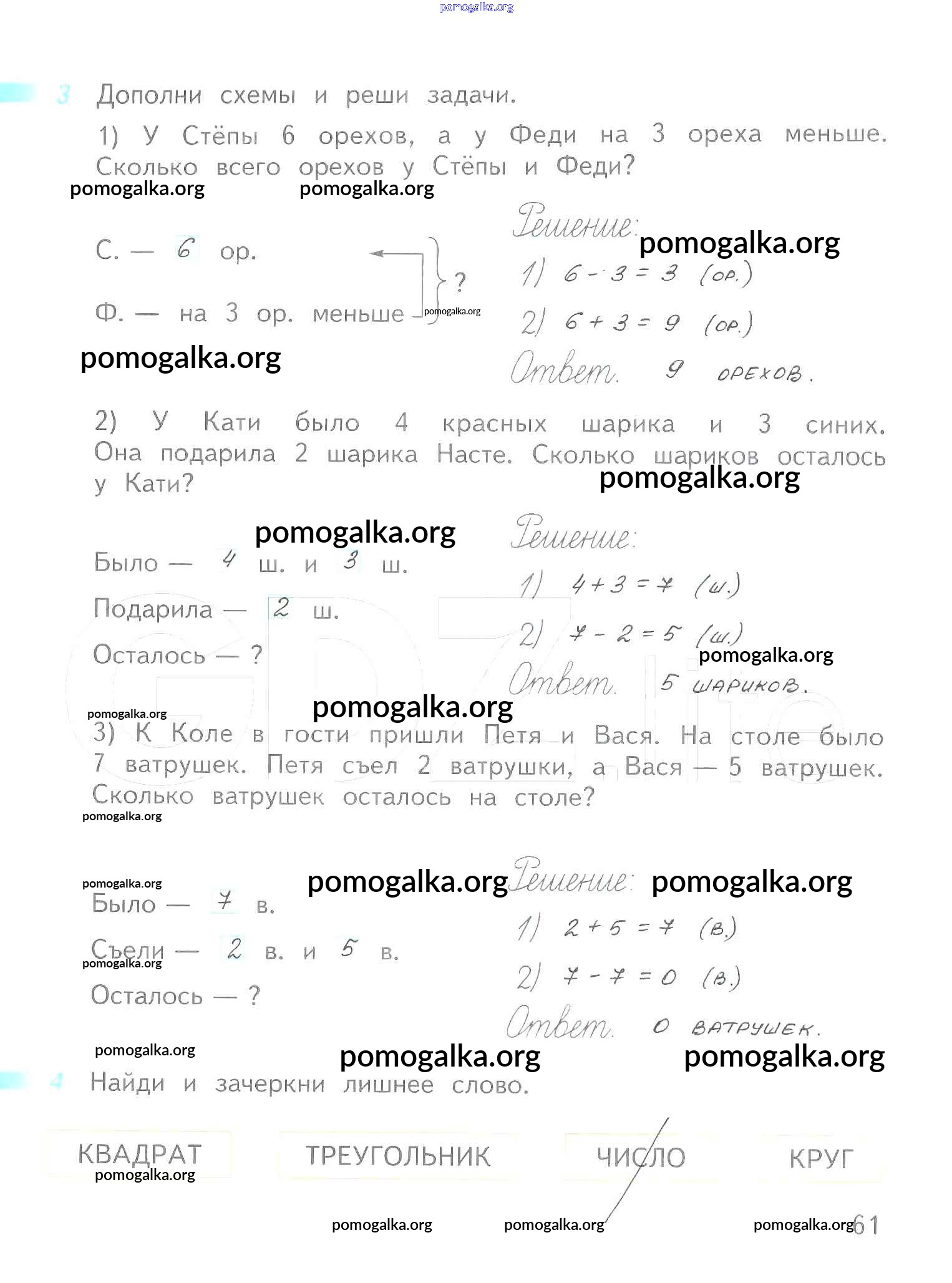Готовые ответы - Математика 1 класс рабочая тетрадь Дорофеев Г.В. - часть 2. страница 61
