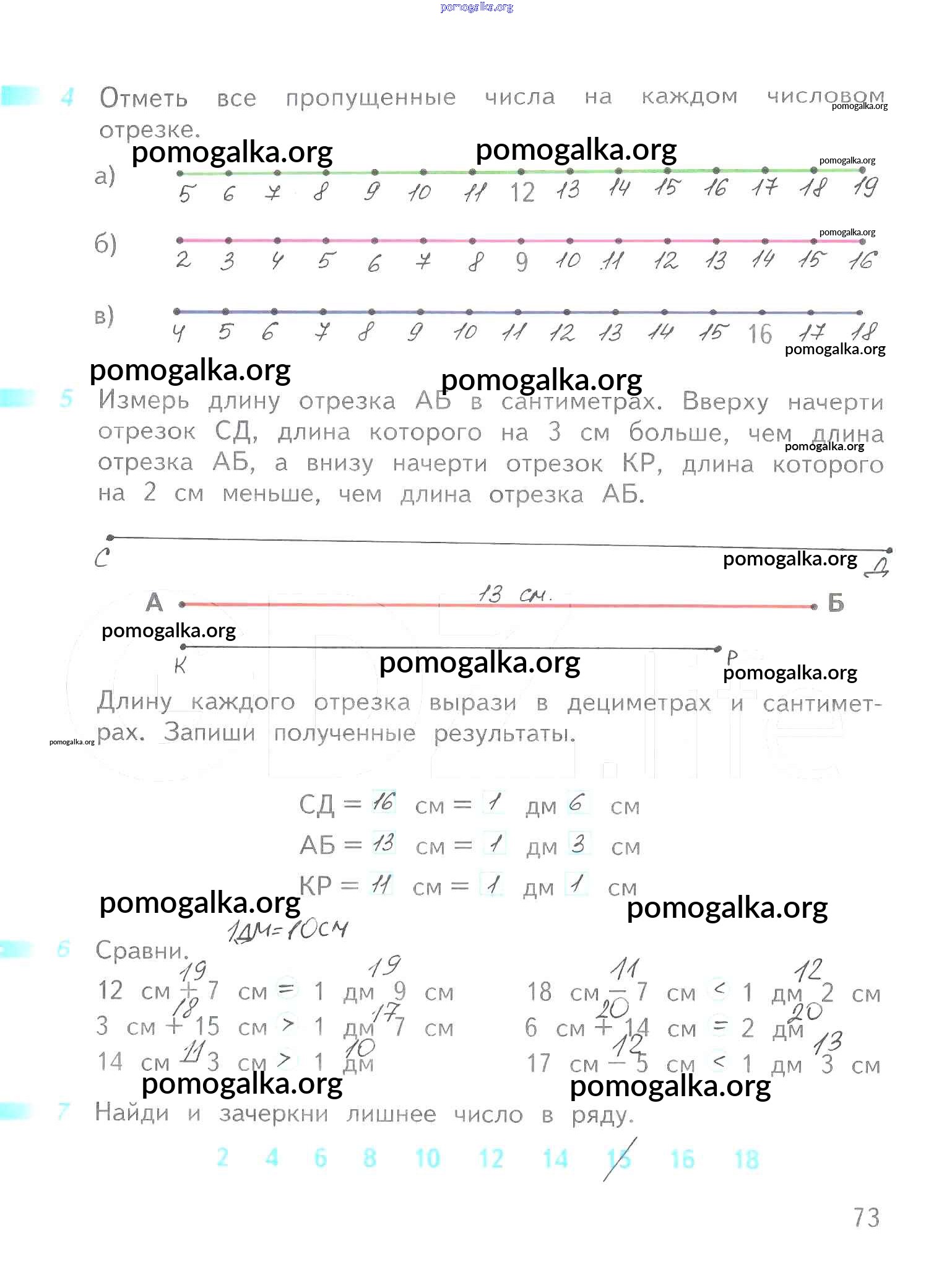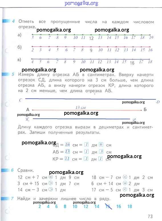 Готовые ответы - Математика 1 класс рабочая тетрадь Дорофеев Г.В. - часть 2. страница 73