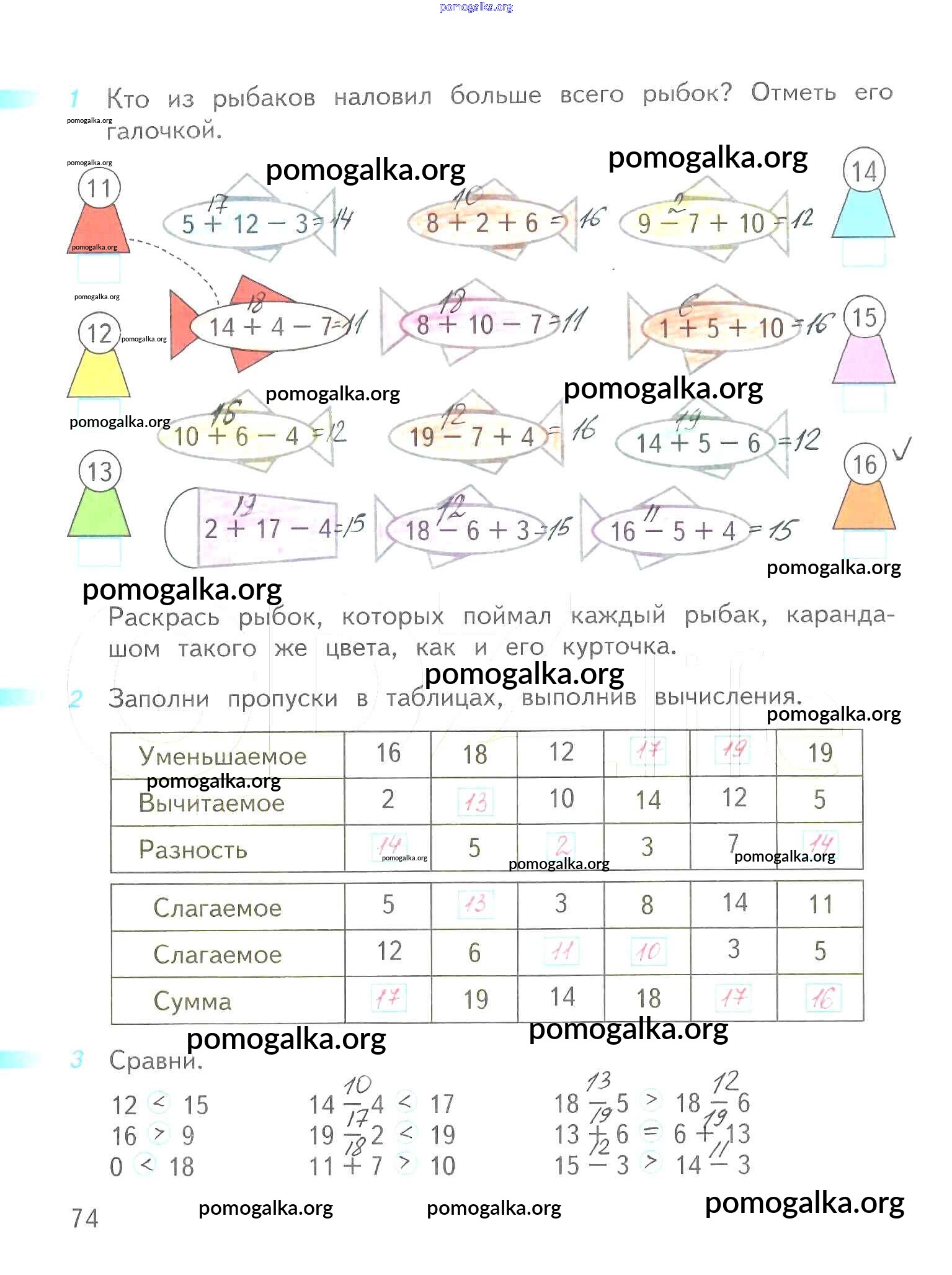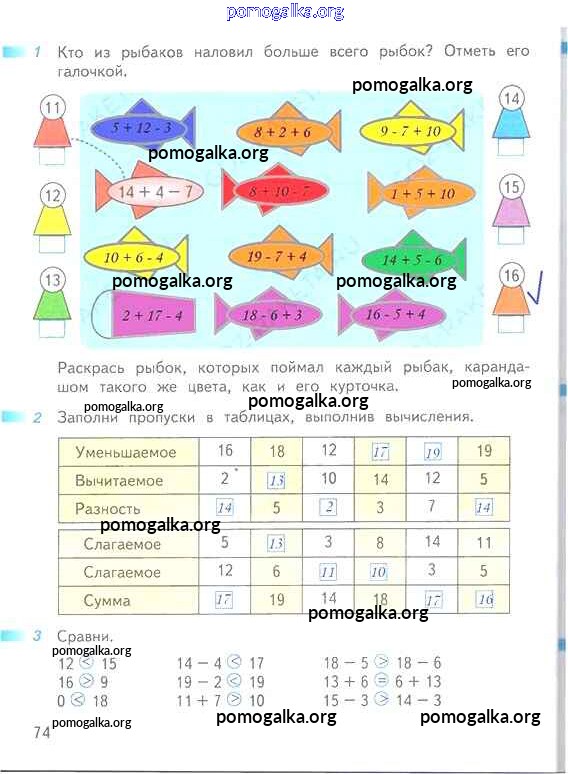 Готовые ответы - Математика 1 класс рабочая тетрадь Дорофеев Г.В. - часть 2. страница 74