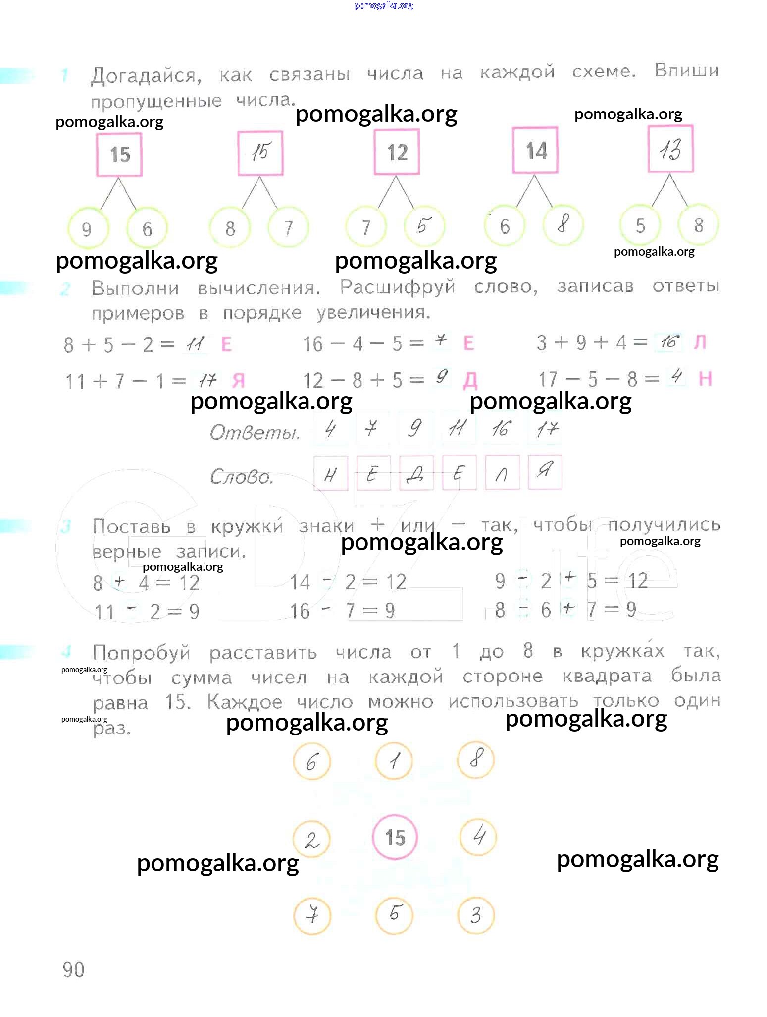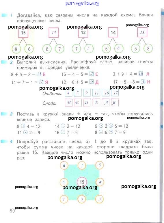 Готовые ответы - Математика 1 класс рабочая тетрадь Дорофеев Г.В. - часть 2. страница 90