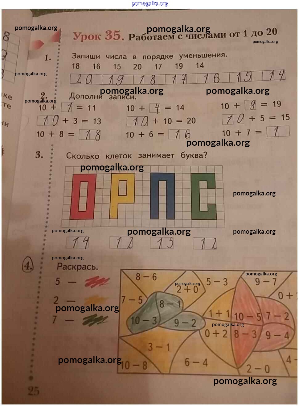 Готовые ответы - Математика 1 класс рабочая тетрадь Кочурова Е.Э. - часть 2. страницы 25
