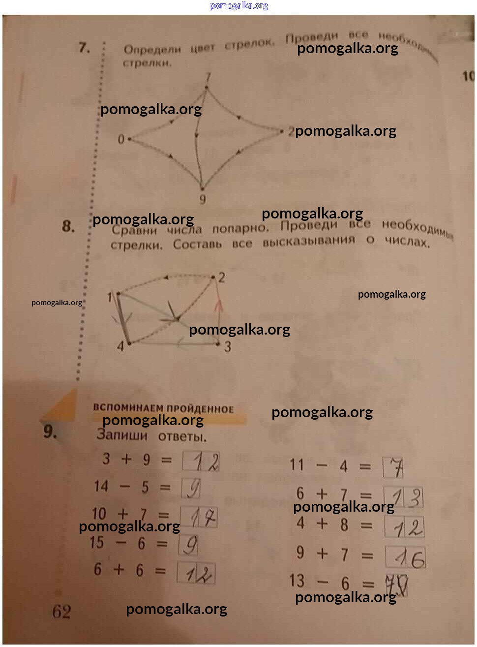 Готовые ответы - Математика 1 класс рабочая тетрадь Кочурова Е.Э. - часть 2. страницы 62