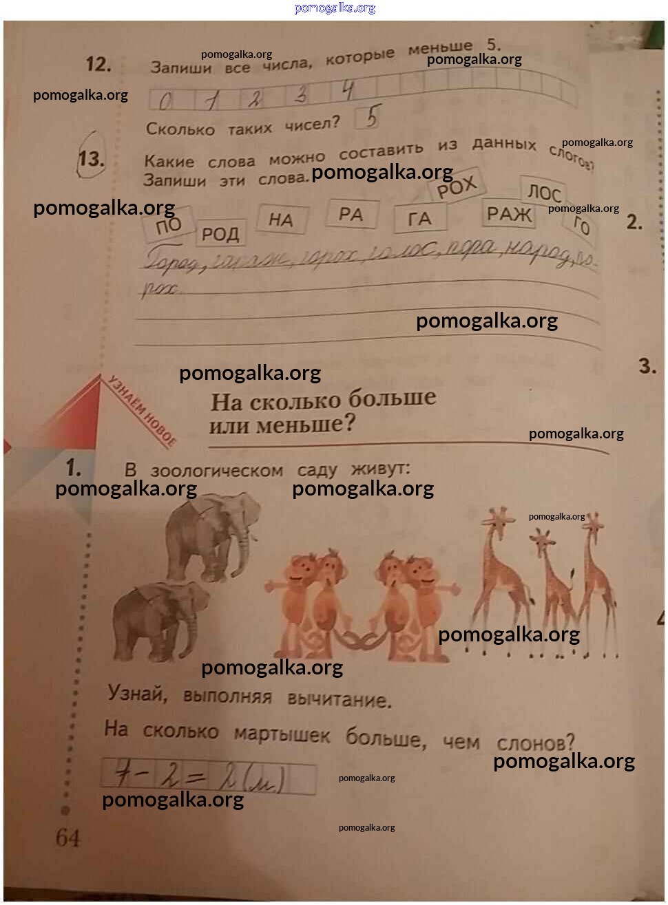 Готовые ответы - Математика 1 класс рабочая тетрадь Кочурова Е.Э. - часть 2. страницы 64