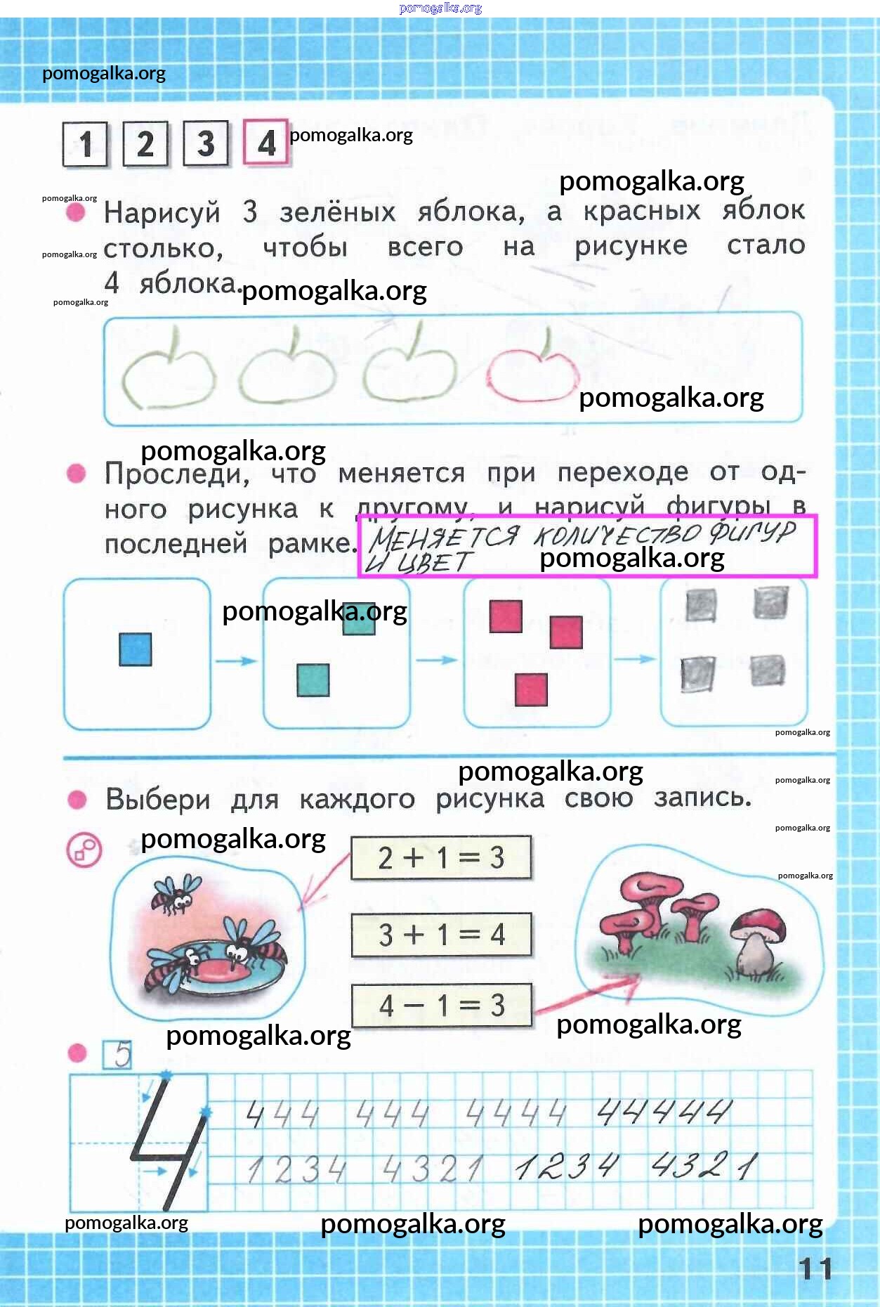 Готовые ответы - Математика 1 класс рабочая тетрадь Моро М.И. - часть 1. страница 11