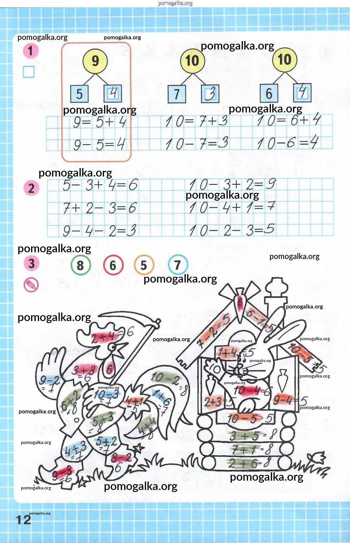 Готовые ответы - Математика 1 класс рабочая тетрадь Моро М.И. - часть 2. страница 12