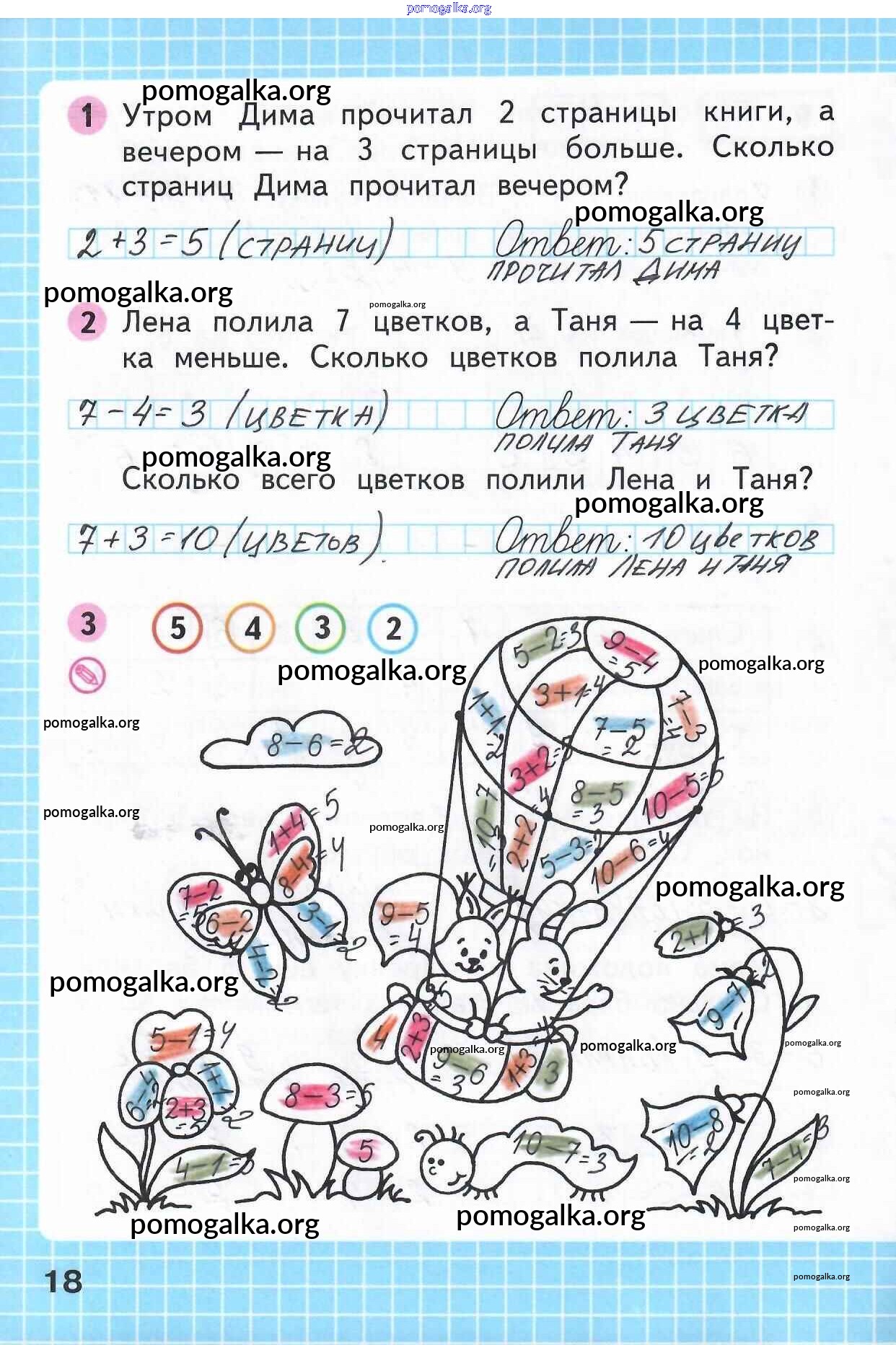 Готовые ответы - Математика 1 класс рабочая тетрадь Моро М.И. - часть 2. страница 18