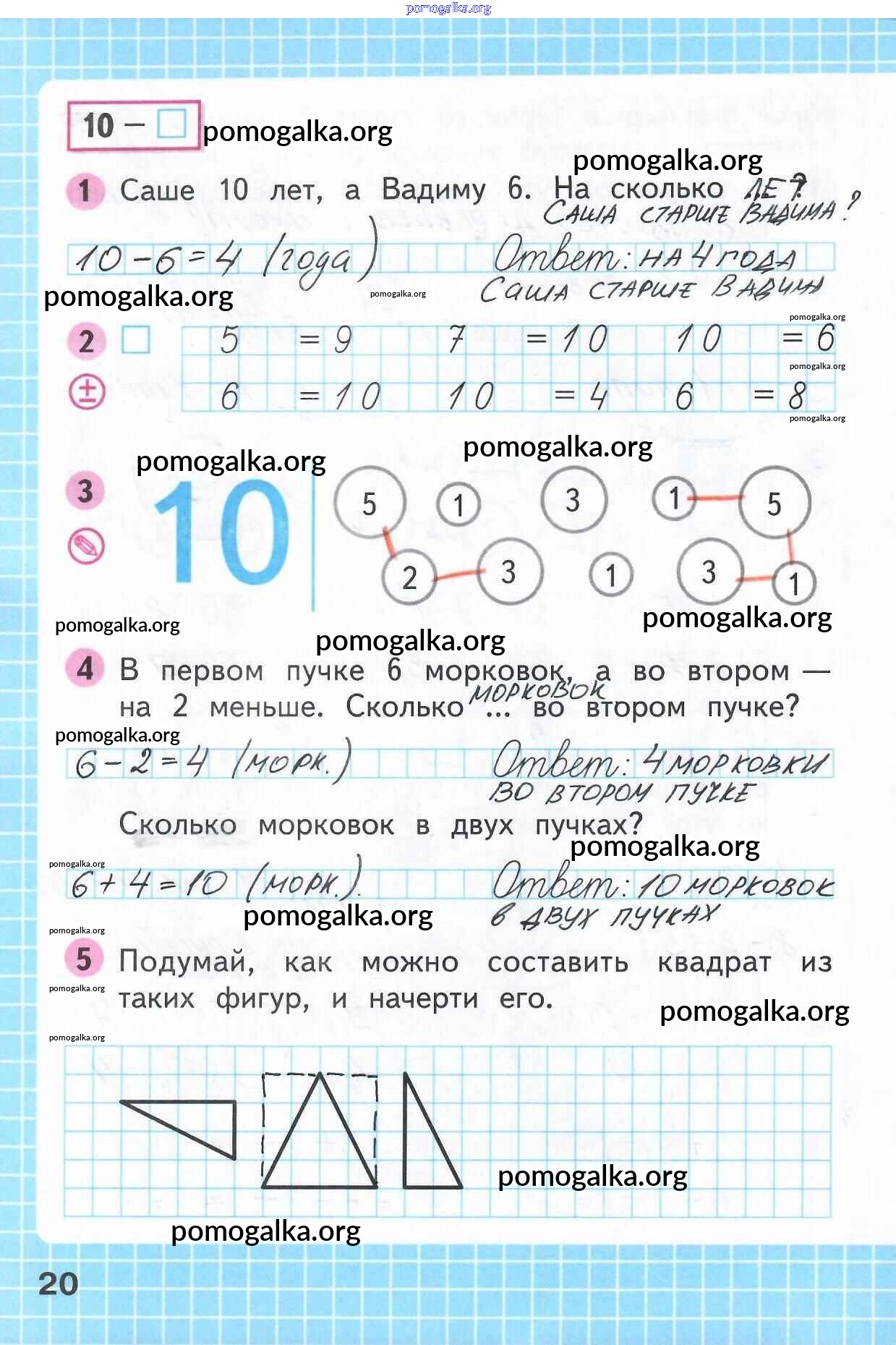 Готовые ответы - Математика 1 класс рабочая тетрадь Моро М.И. - часть 2. страница 20
