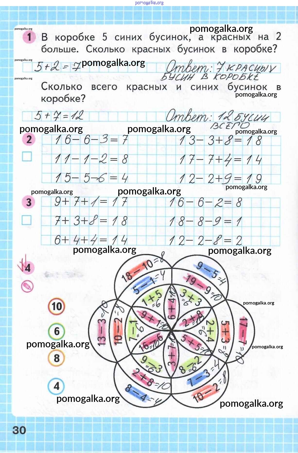 Готовые ответы - Математика 1 класс рабочая тетрадь Моро М.И. - часть 2. страница 30