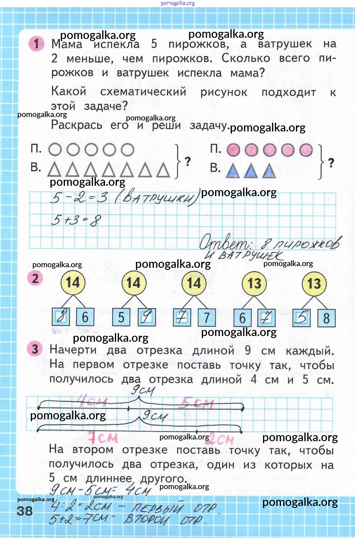 Готовые ответы - Математика 1 класс рабочая тетрадь Моро М.И. - часть 2. страница 38