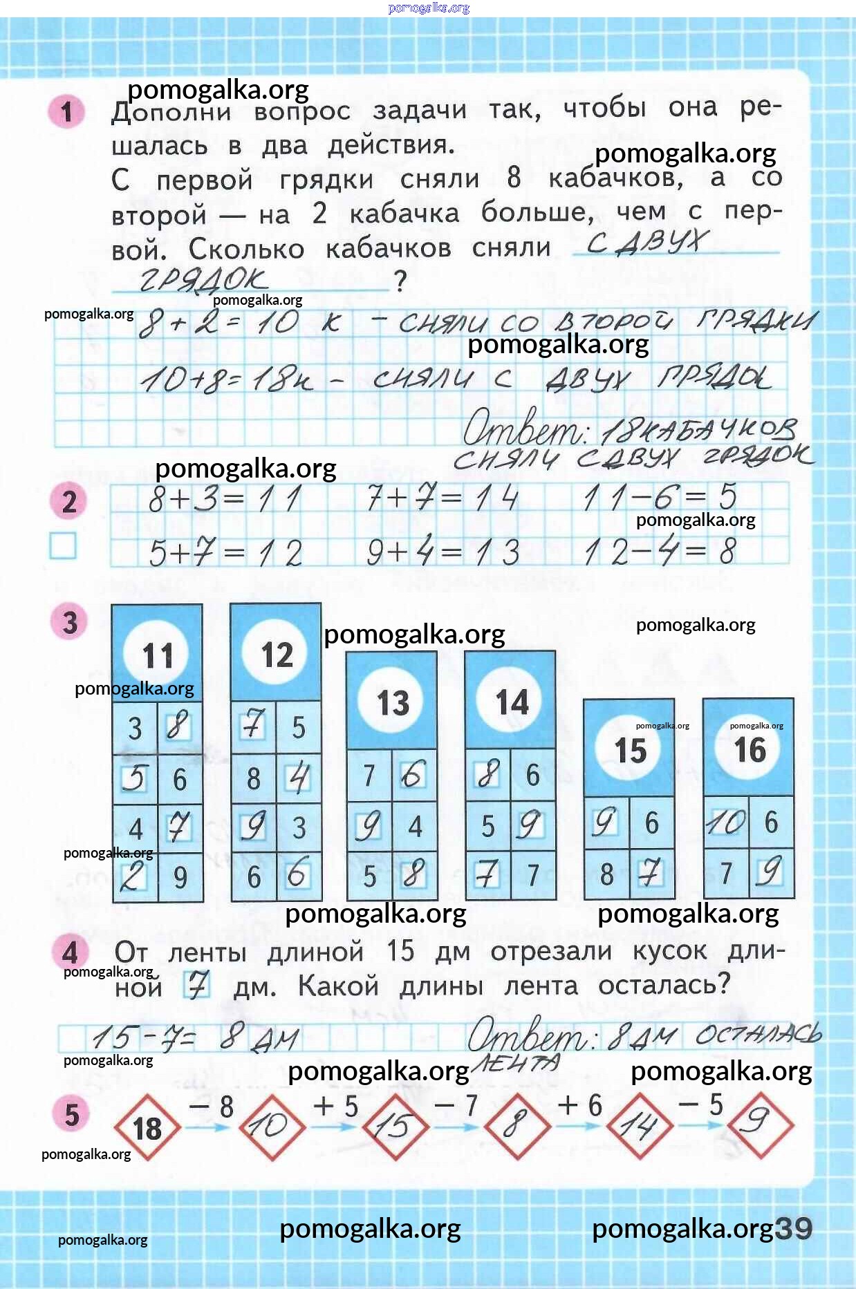 Готовые ответы - Математика 1 класс рабочая тетрадь Моро М.И. - часть 2. страница 39