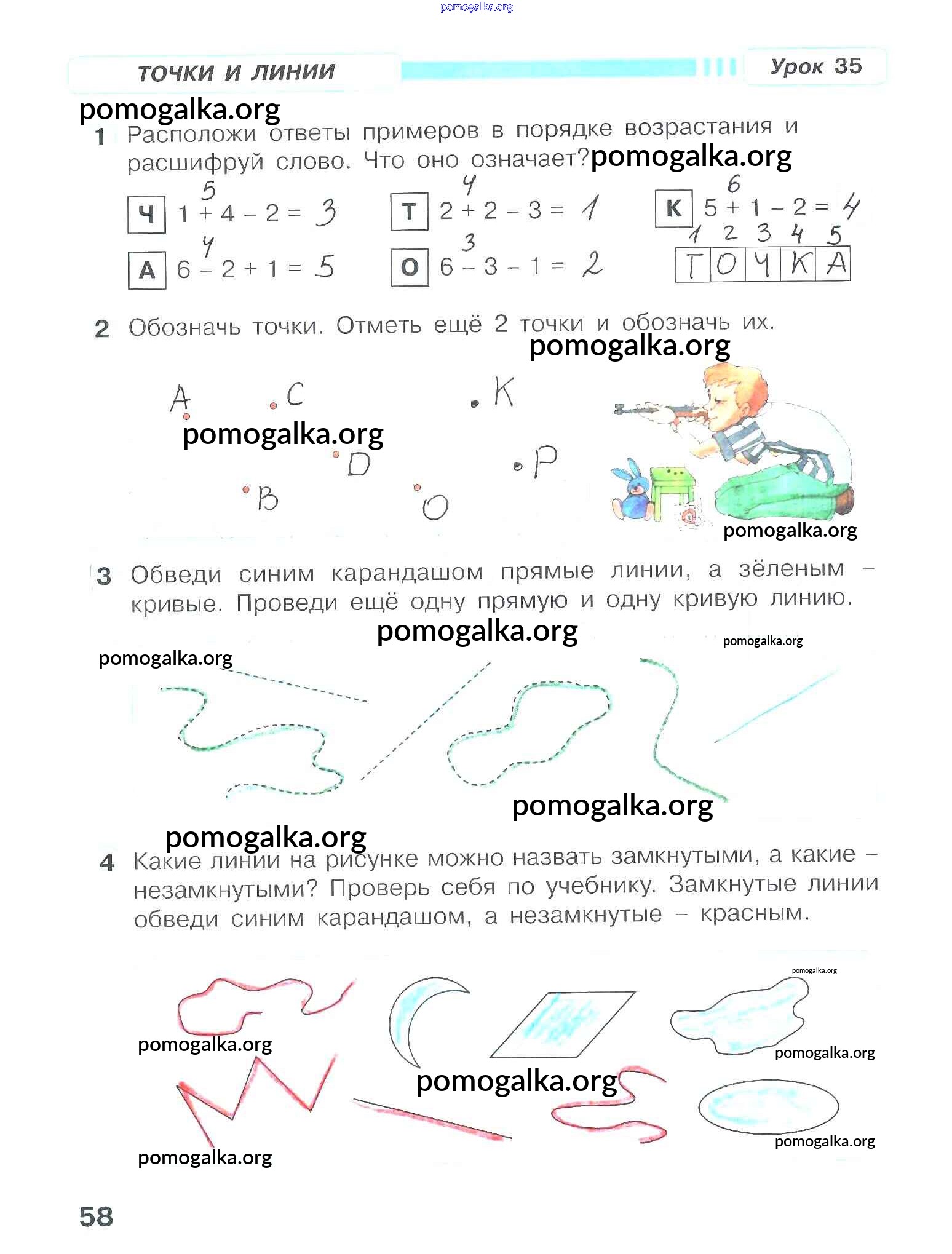 Готовые ответы - Математика 1 класс рабочая тетрадь Петерсон Л.Г. - часть 1. страница 58