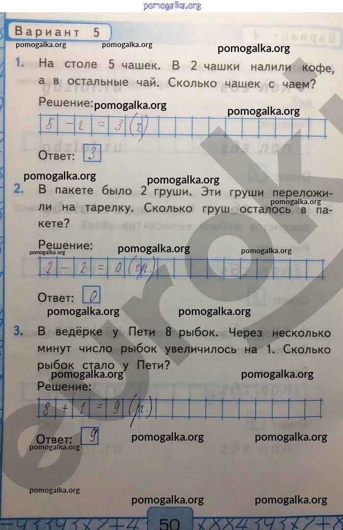 Готовые ответы - Математика 1 класс Контрольные работы Рудницкая В.Н. (к уч. Моро) - часть 1. страница 50