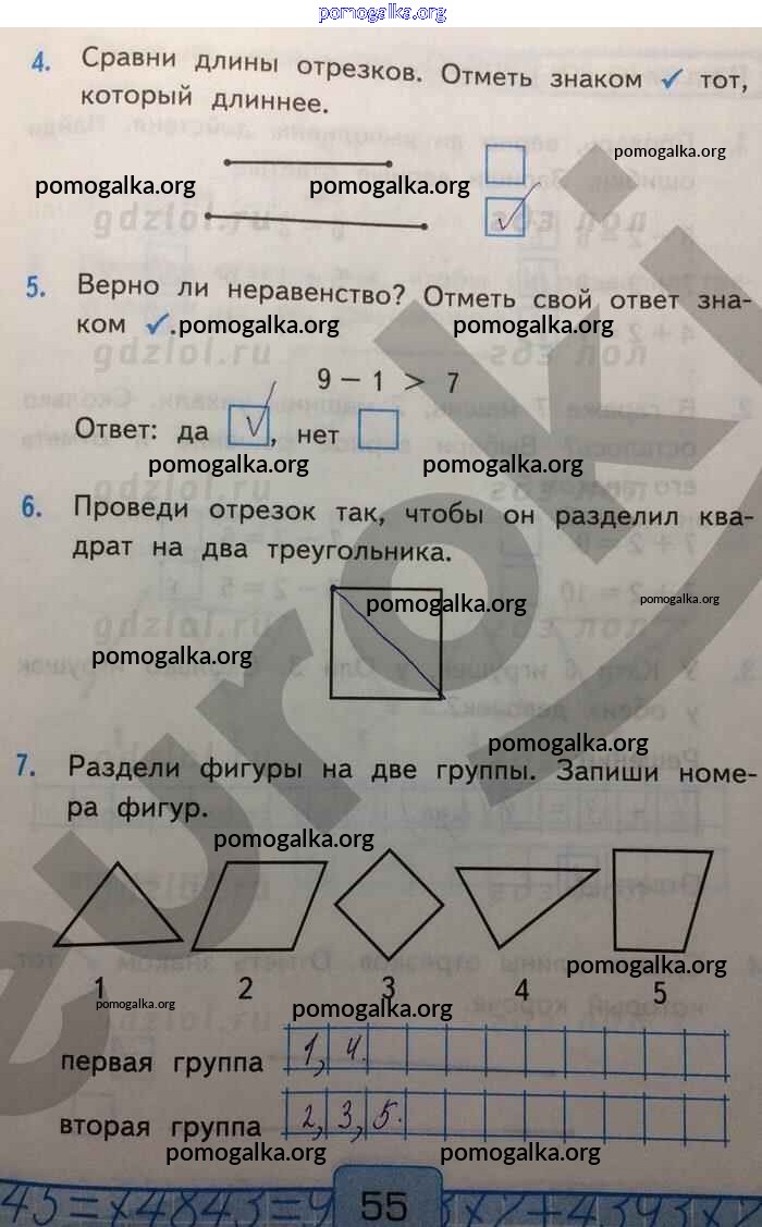 Готовые ответы - Математика 1 класс Контрольные работы Рудницкая В.Н. (к уч. Моро) - часть 1. страница 55