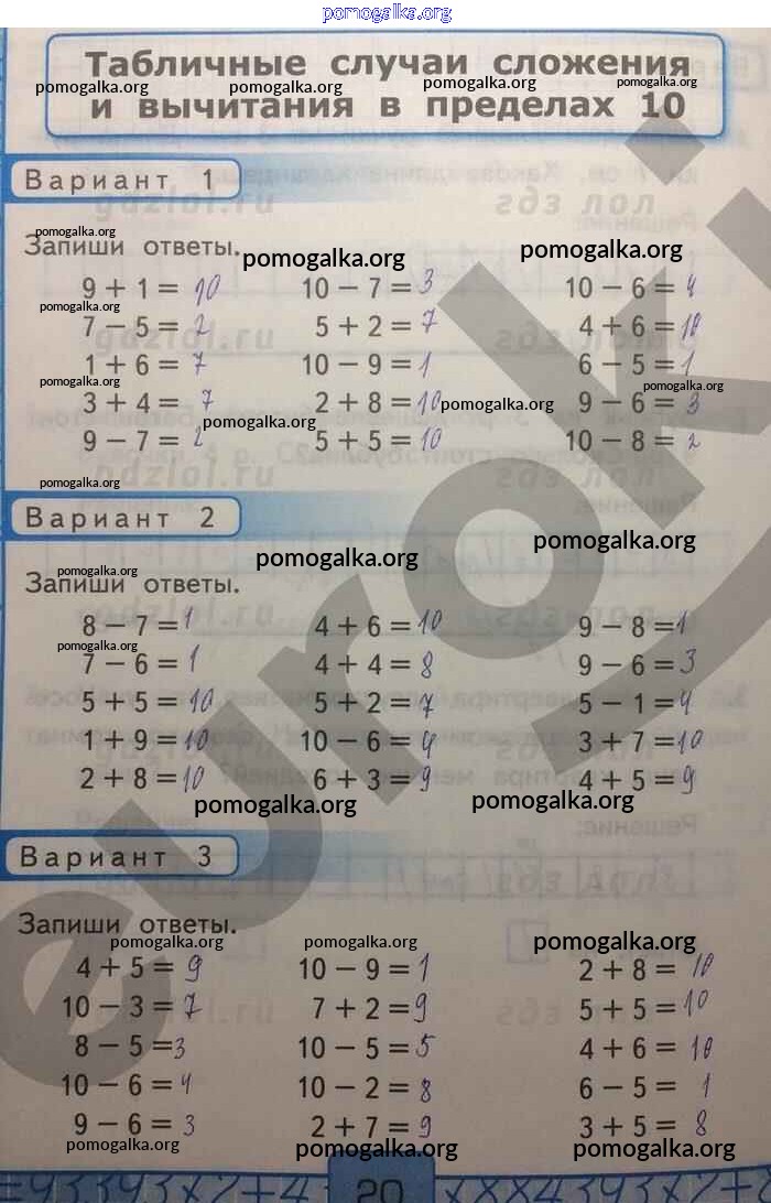 Готовые ответы - Математика 1 класс Контрольные работы Рудницкая В.Н. (к уч. Моро) - часть 2. страница 20