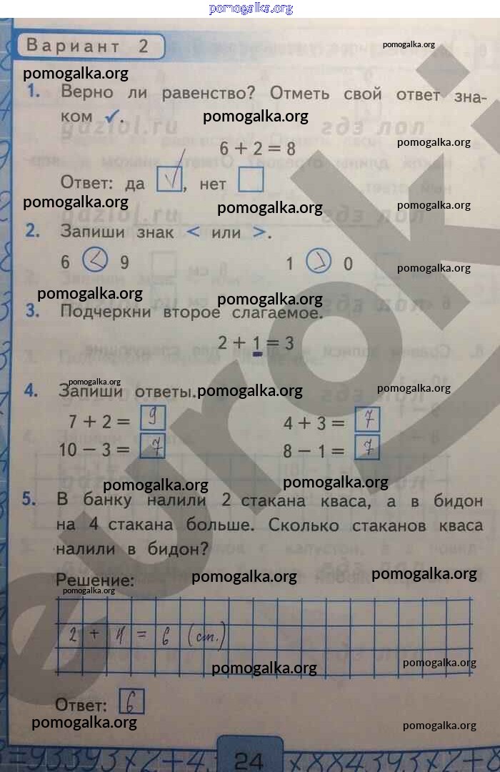 Готовые ответы - Математика 1 класс Контрольные работы Рудницкая В.Н. (к уч. Моро) - часть 2. страница 24