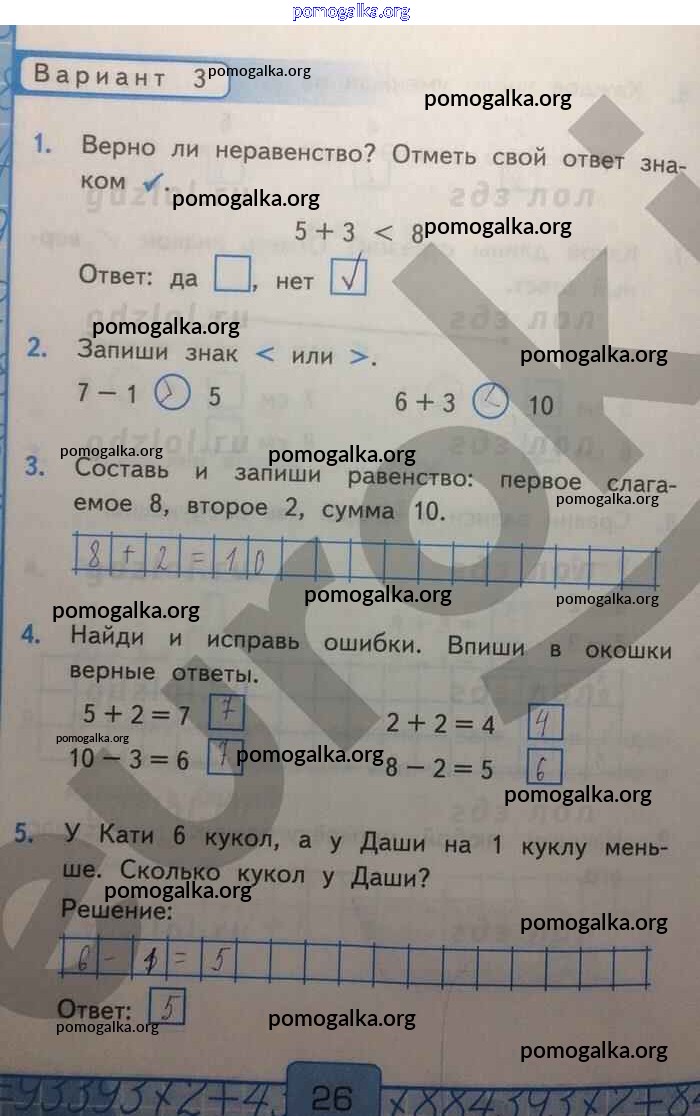 Готовые ответы - Математика 1 класс Контрольные работы Рудницкая В.Н. (к уч. Моро) - часть 2. страница 26