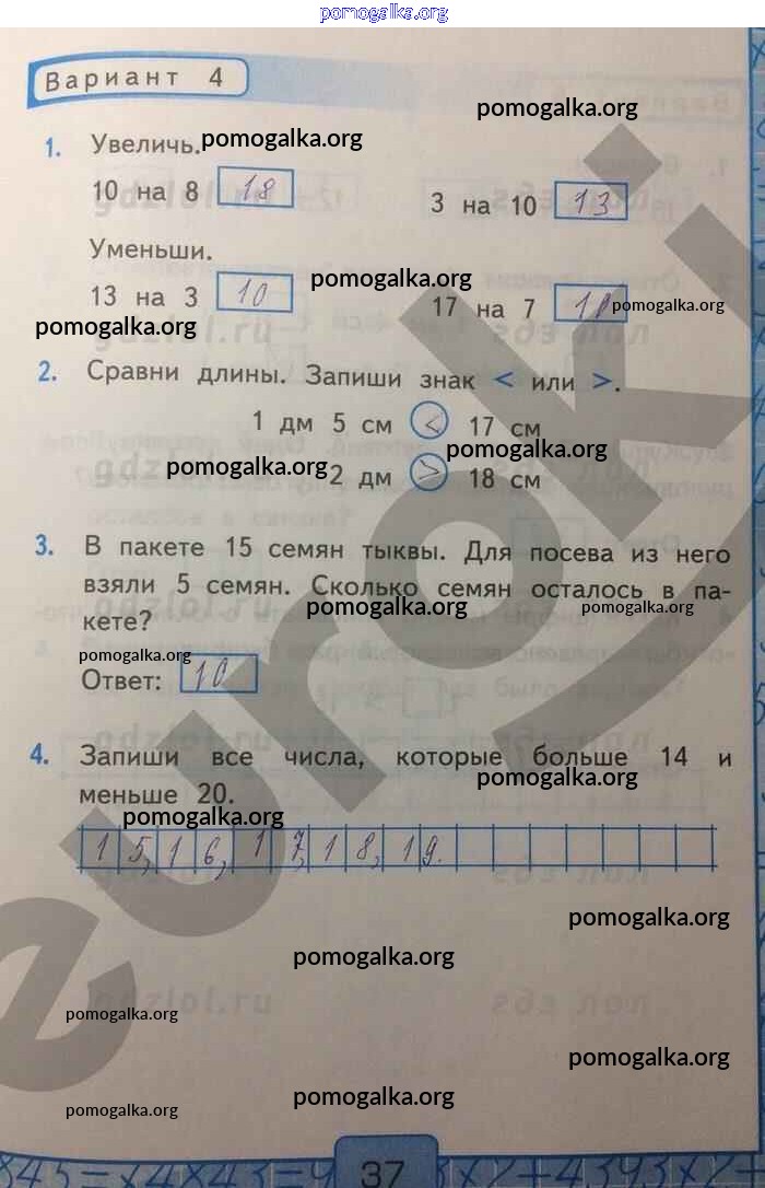 Готовые ответы - Математика 1 класс Контрольные работы Рудницкая В.Н. (к уч. Моро) - часть 2. страница 37