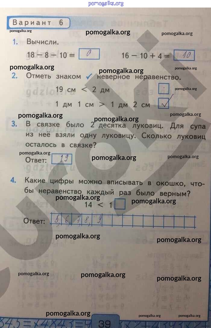 Готовые ответы - Математика 1 класс Контрольные работы Рудницкая В.Н. (к уч. Моро) - часть 2. страница 39