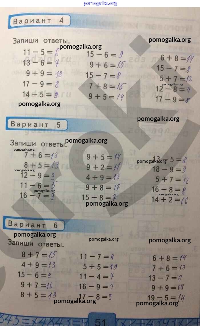 Готовые ответы - Математика 1 класс Контрольные работы Рудницкая В.Н. (к уч. Моро) - часть 2. страница 51