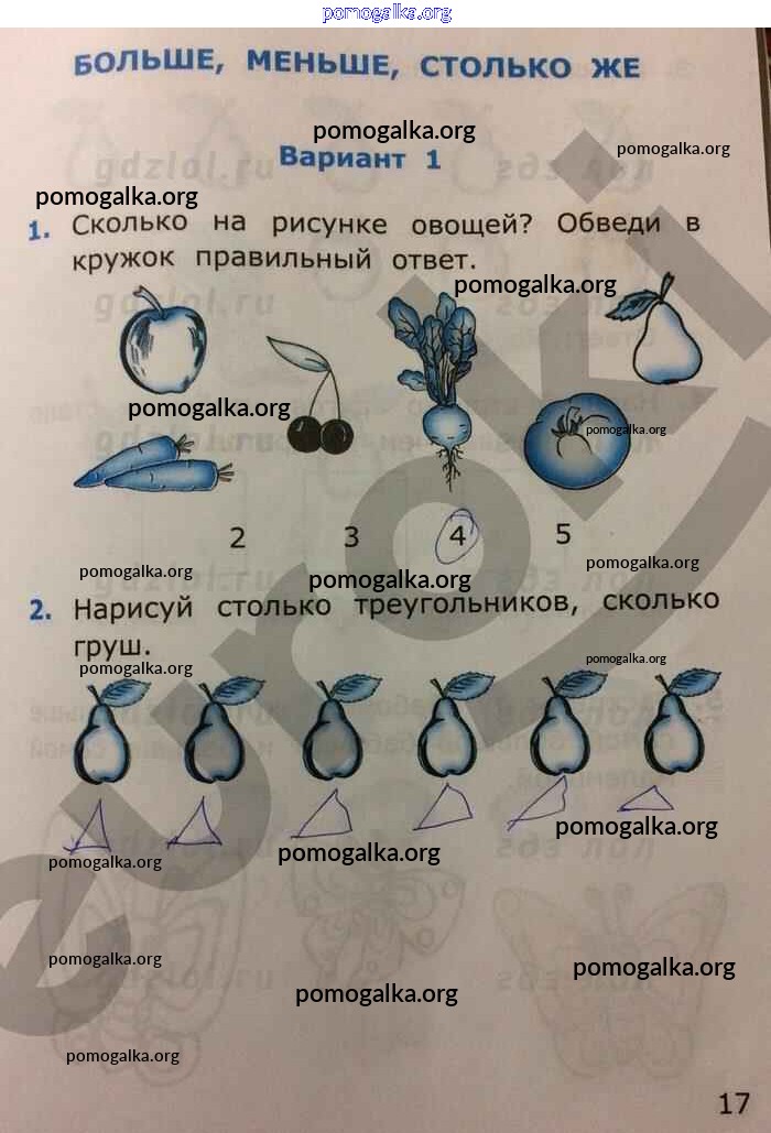 Готовые ответы - Математика 1 класс самостоятельные работы Самсонова Л.Ю. (к уч. Моро) - часть 1. страница 17