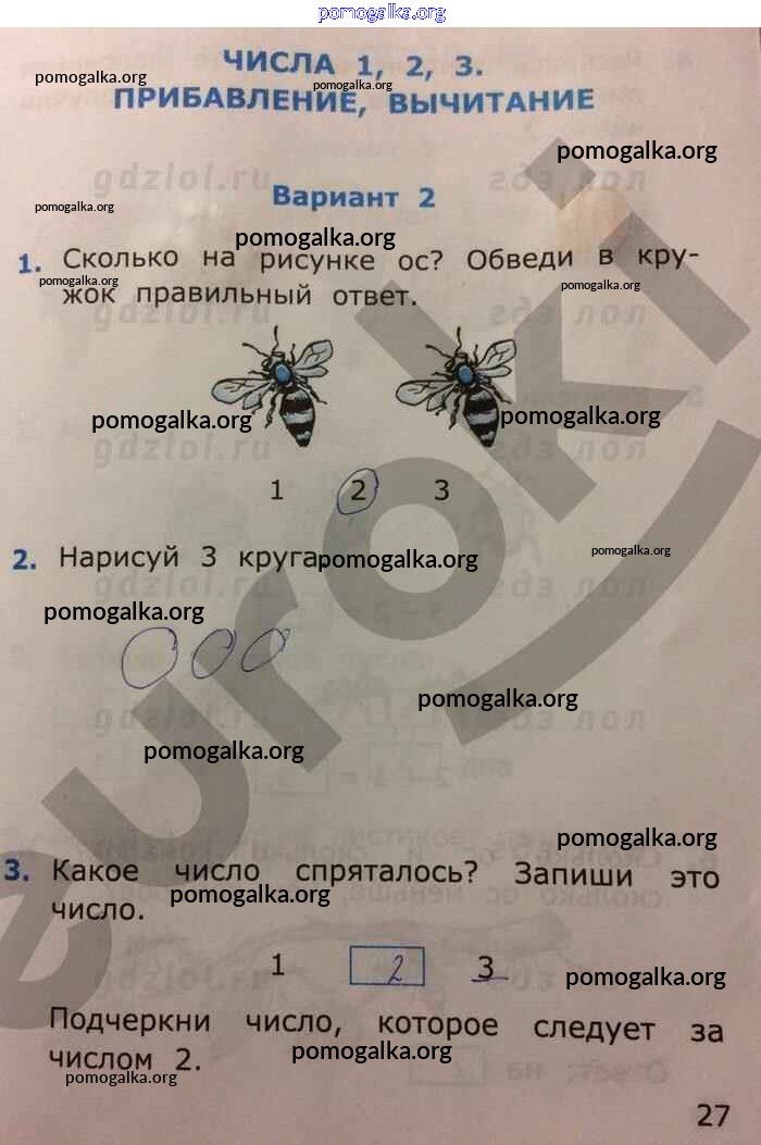 Готовые ответы - Математика 1 класс самостоятельные работы Самсонова Л.Ю. (к уч. Моро) - часть 1. страница 27