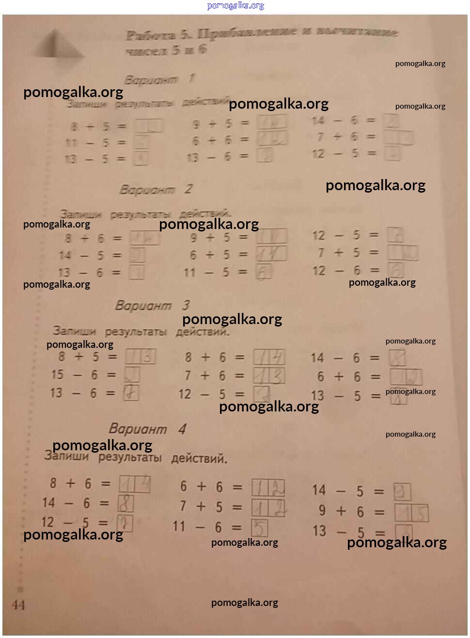 Готовые ответы - Математика 1 класс тетрадь для проверочных работ Рудницкая В.Н. - страница 44