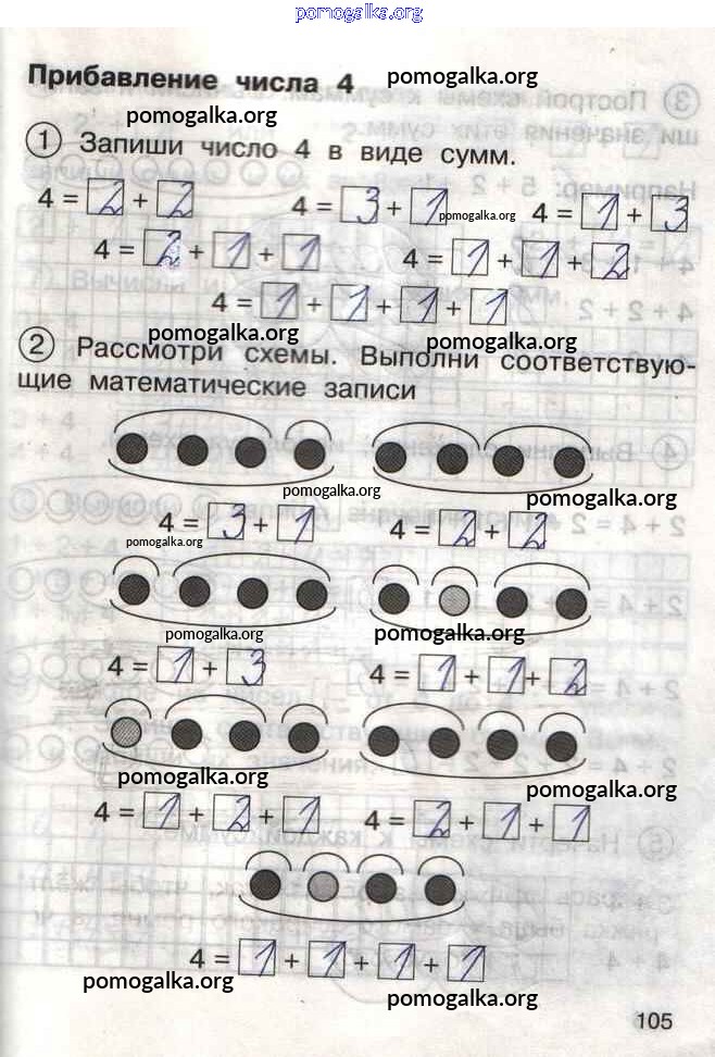 Готовые ответы - Математика 1 класс тетрадь для самостоятельной работы Захарова О.А. - тетрадь №1. страница 105