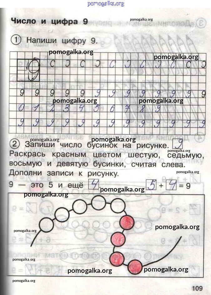 Готовые ответы - Математика 1 класс тетрадь для самостоятельной работы Захарова О.А. - тетрадь №1. страница 109