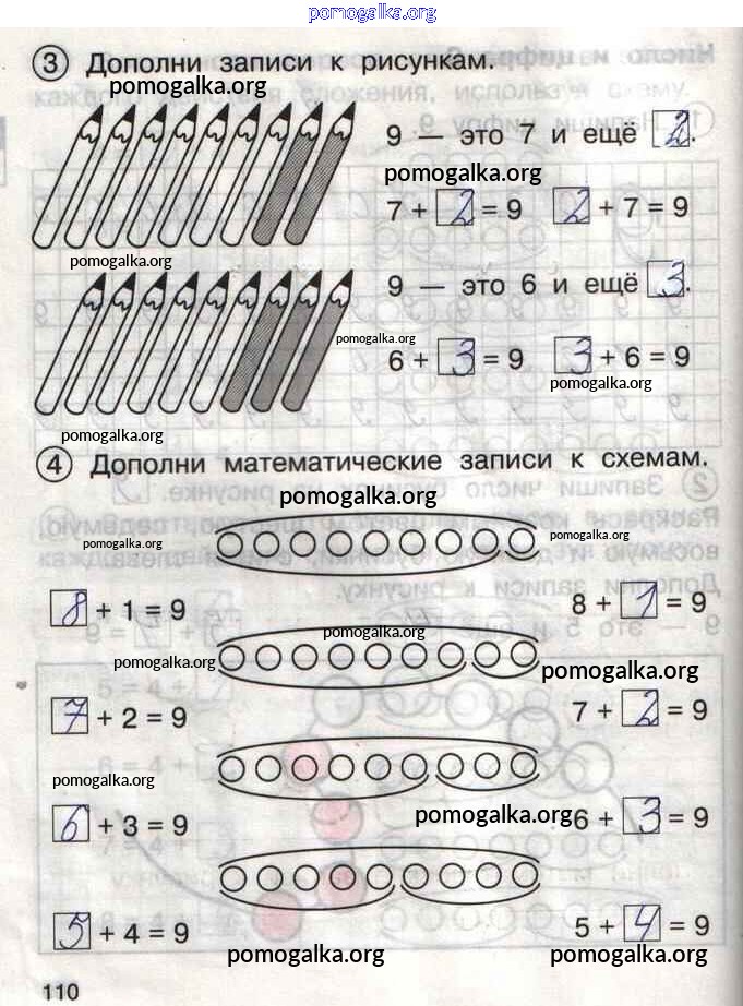 Готовые ответы - Математика 1 класс тетрадь для самостоятельной работы Захарова О.А. - тетрадь №1. страница 110
