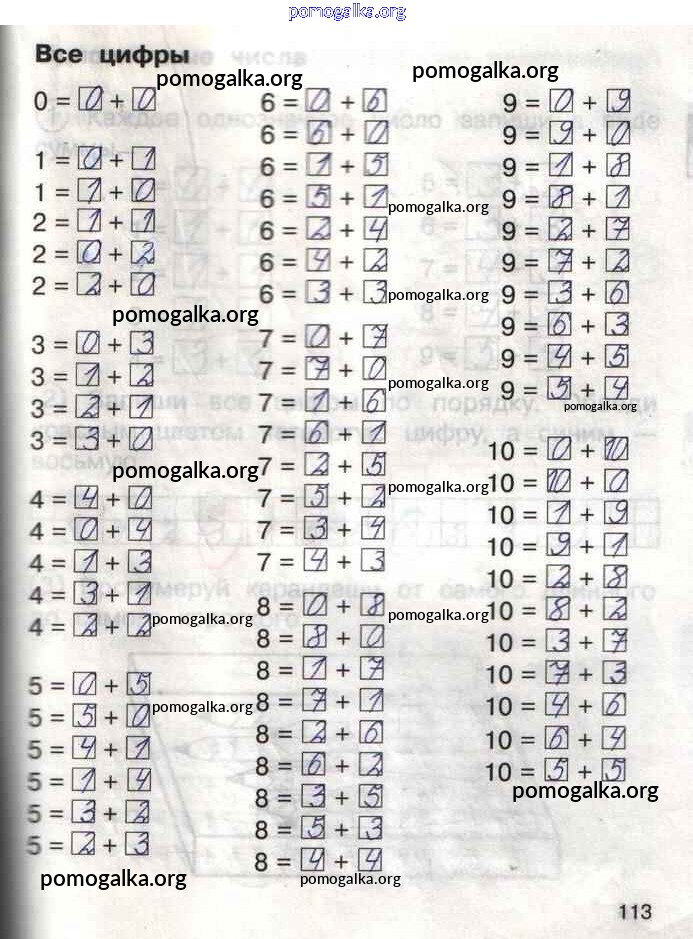 Готовые ответы - Математика 1 класс тетрадь для самостоятельной работы Захарова О.А. - тетрадь №1. страница 113