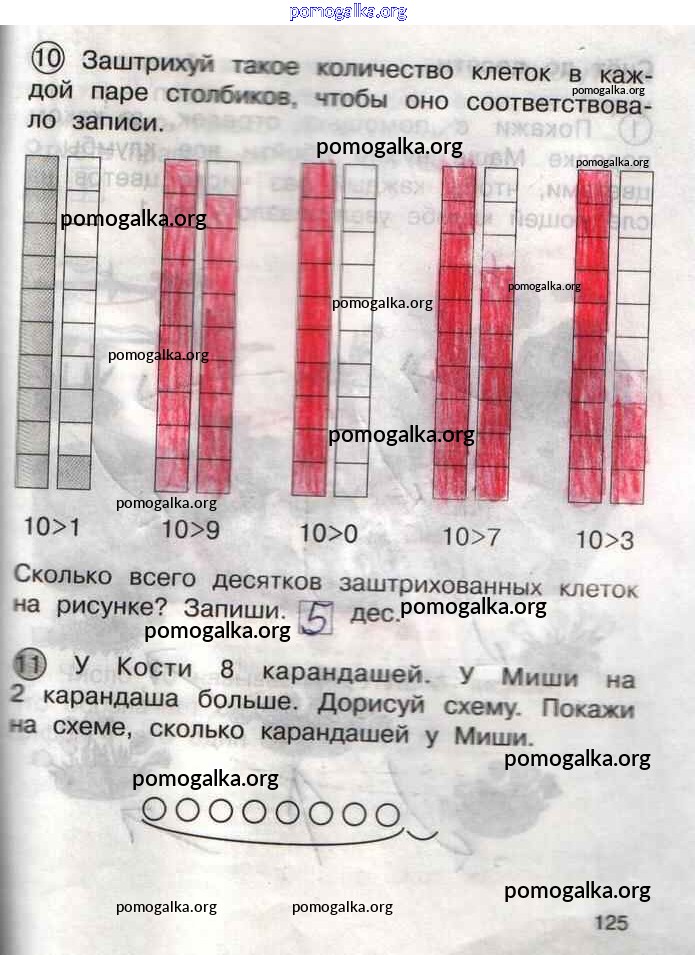 Готовые ответы - Математика 1 класс тетрадь для самостоятельной работы Захарова О.А. - тетрадь №1. страница 125