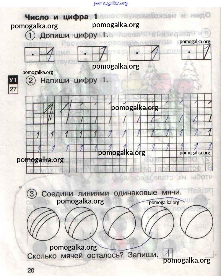 Готовые ответы - Математика 1 класс тетрадь для самостоятельной работы Захарова О.А. - тетрадь №1. страница 20