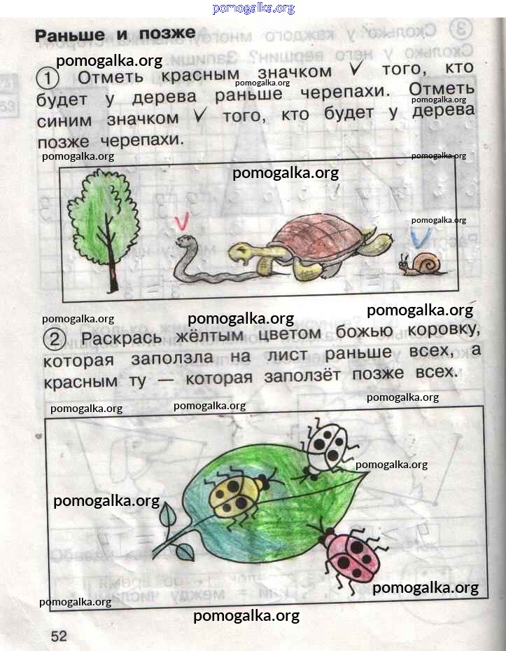 Готовые ответы - Математика 1 класс тетрадь для самостоятельной работы Захарова О.А. - тетрадь №1. страница 52