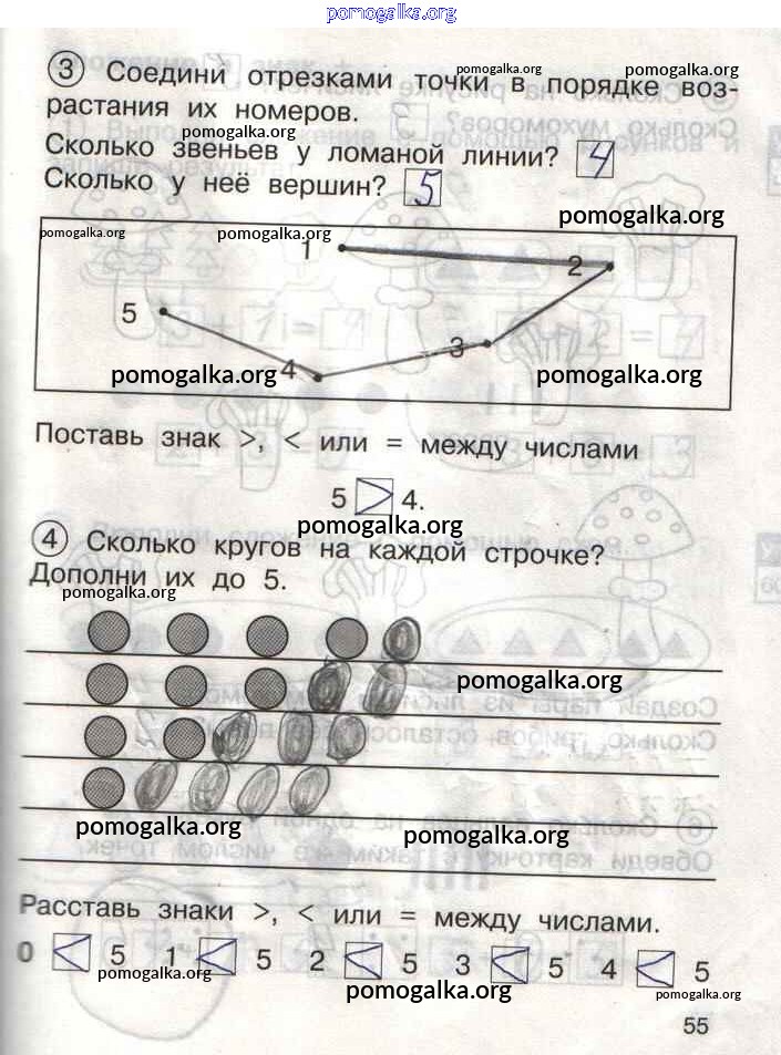 Готовые ответы - Математика 1 класс тетрадь для самостоятельной работы Захарова О.А. - тетрадь №1. страница 55
