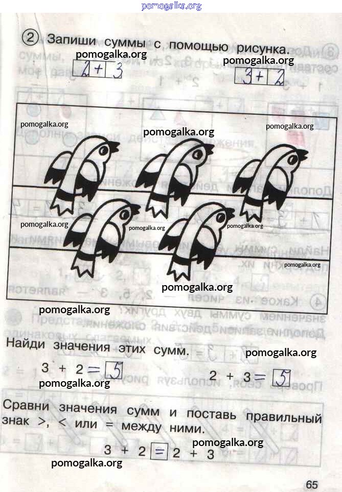 Готовые ответы - Математика 1 класс тетрадь для самостоятельной работы Захарова О.А. - тетрадь №1. страница 65