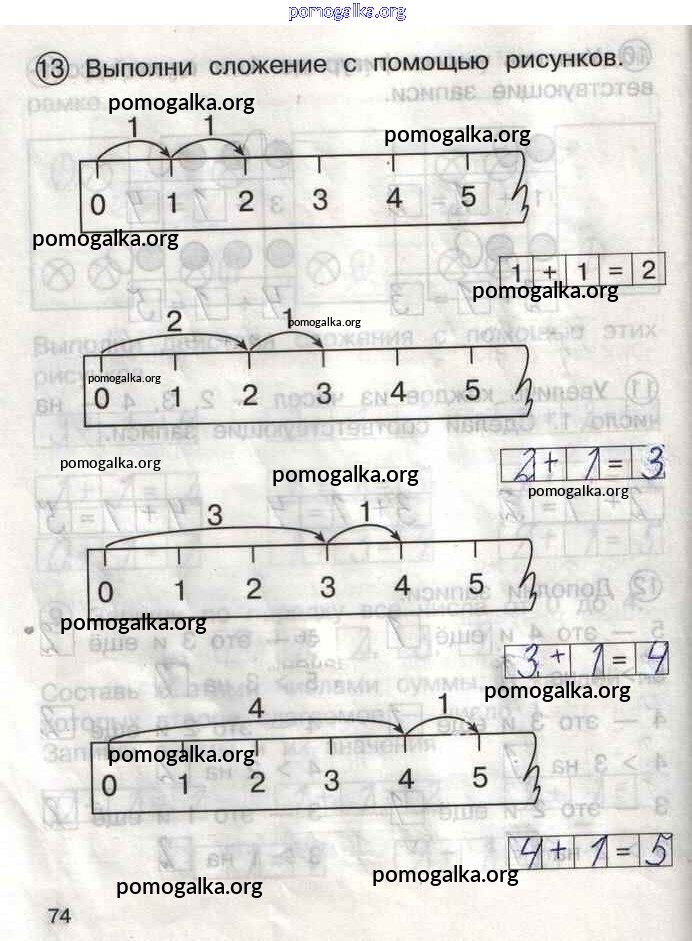 Готовые ответы - Математика 1 класс тетрадь для самостоятельной работы Захарова О.А. - тетрадь №1. страница 74
