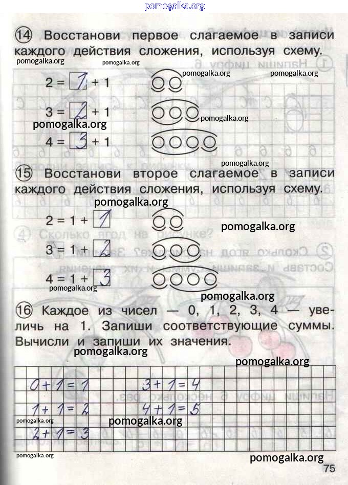 Готовые ответы - Математика 1 класс тетрадь для самостоятельной работы Захарова О.А. - тетрадь №1. страница 75