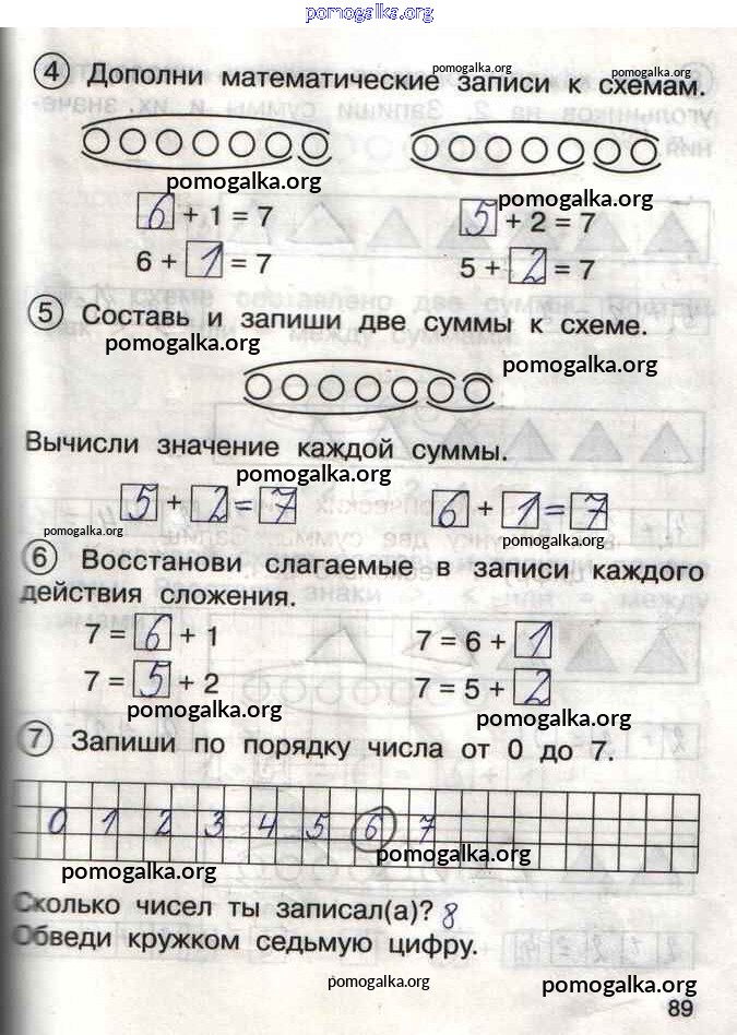 Готовые ответы - Математика 1 класс тетрадь для самостоятельной работы Захарова О.А. - тетрадь №1. страница 89