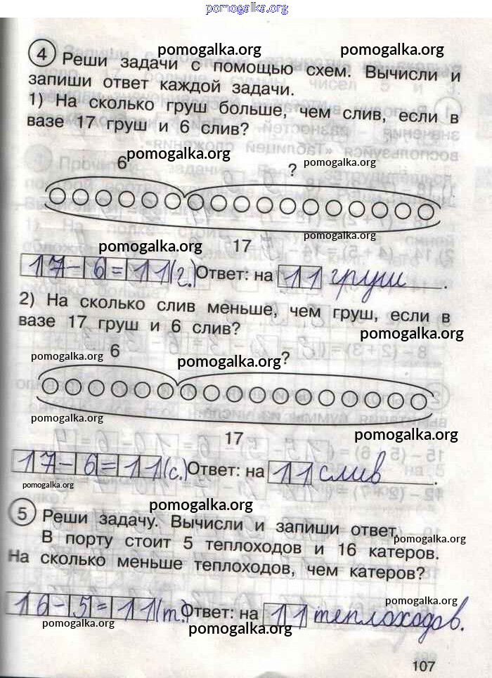 Готовые ответы - Математика 1 класс тетрадь для самостоятельной работы Захарова О.А. - тетрадь №2. страница 107