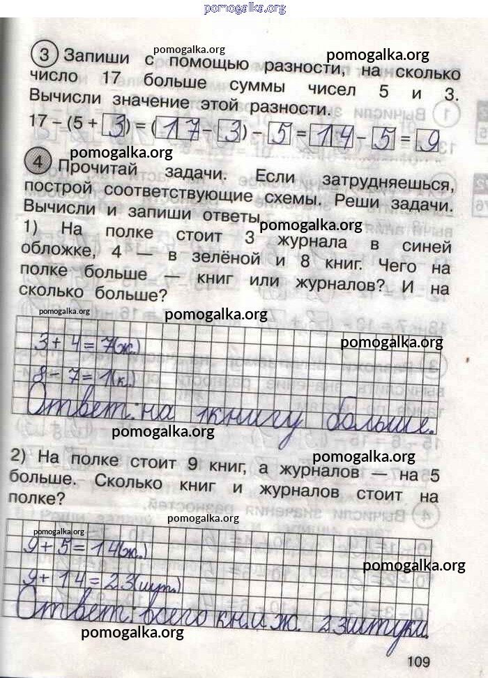 Готовые ответы - Математика 1 класс тетрадь для самостоятельной работы Захарова О.А. - тетрадь №2. страница 109