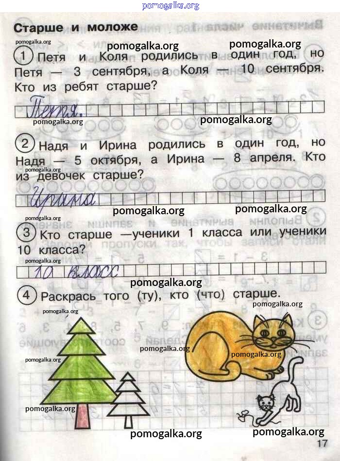 Готовые ответы - Математика 1 класс тетрадь для самостоятельной работы Захарова О.А. - тетрадь №2. страница 17