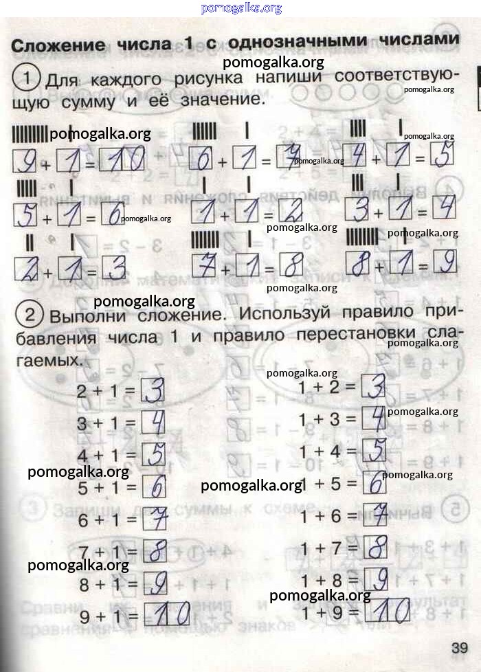 Готовые ответы - Математика 1 класс тетрадь для самостоятельной работы Захарова О.А. - тетрадь №2. страница 39