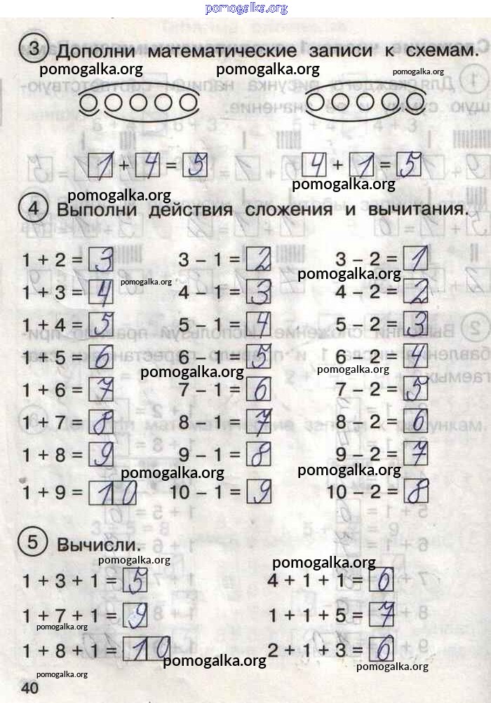 Готовые ответы - Математика 1 класс тетрадь для самостоятельной работы Захарова О.А. - тетрадь №2. страница 40