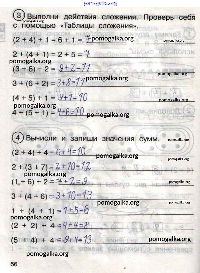 Готовые ответы - Математика 1 класс тетрадь для самостоятельной работы Захарова О.А. - тетрадь №2. страница 56