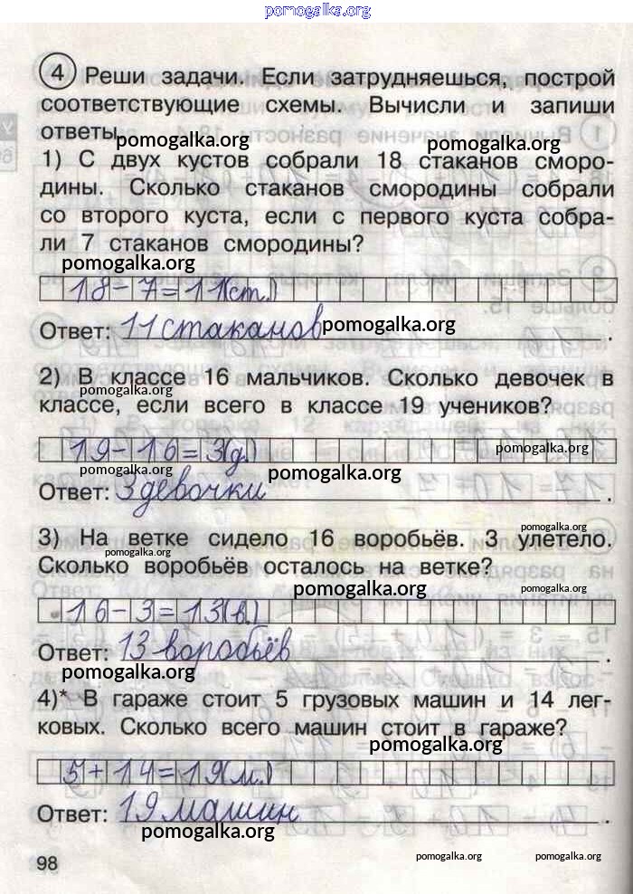 Готовые ответы - Математика 1 класс тетрадь для самостоятельной работы Захарова О.А. - тетрадь №2. страница 98