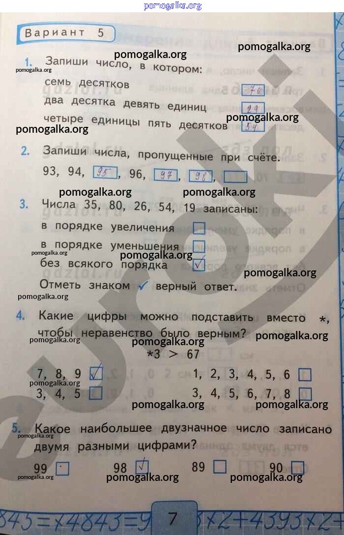 Готовые ответы - Математика 2 класс Контрольные работы Рудницкая В.Н. (к уч. Моро) - Числа 20—100 часть 1 Вар-5