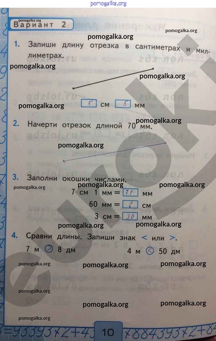 Готовые ответы - Математика 2 класс Контрольные работы Рудницкая В.Н. (к уч. Моро) - Измерение длин часть 1 Вар-2